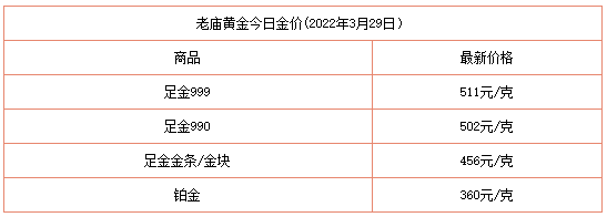 今日(3月29日)国内黄金价格多少钱一克呢?本篇涵盖了包括周大福、周生生、老庙黄金、老凤祥、菜百、六福、金至尊等多家国内品牌金店的最新价格。