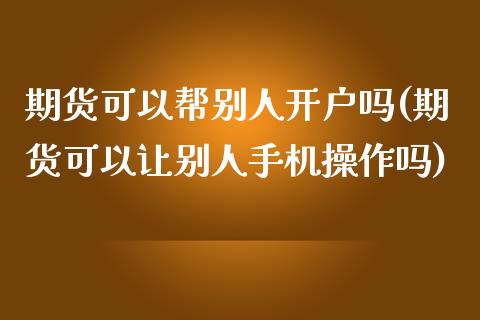 以期货可以帮别人开户吗为主题写一篇简体中文文章: