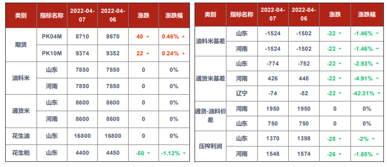 1.油脂油料板块涨势趋弱,花生油厂花生粕报价小幅回落。